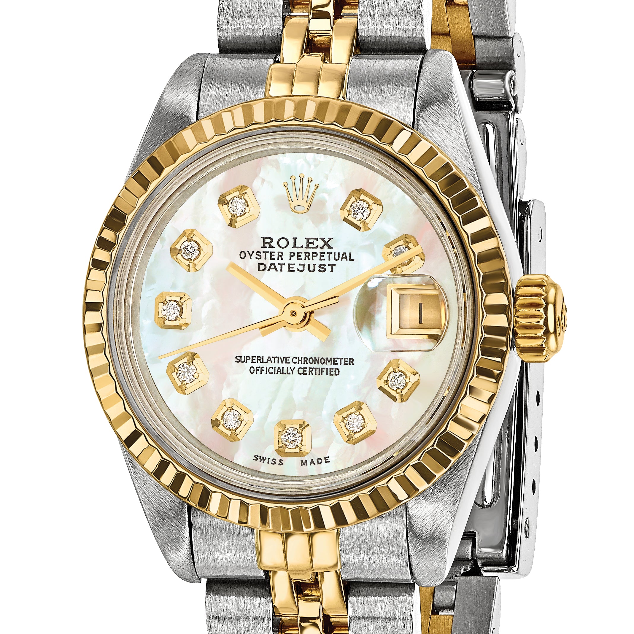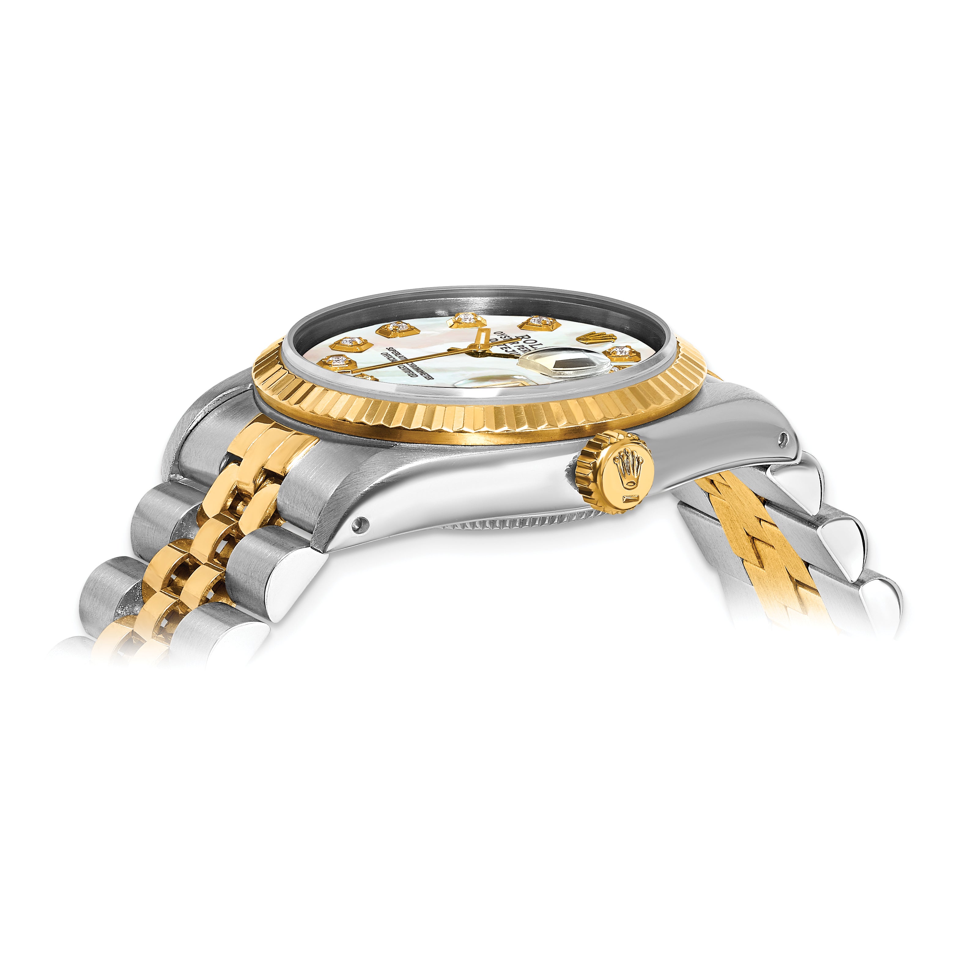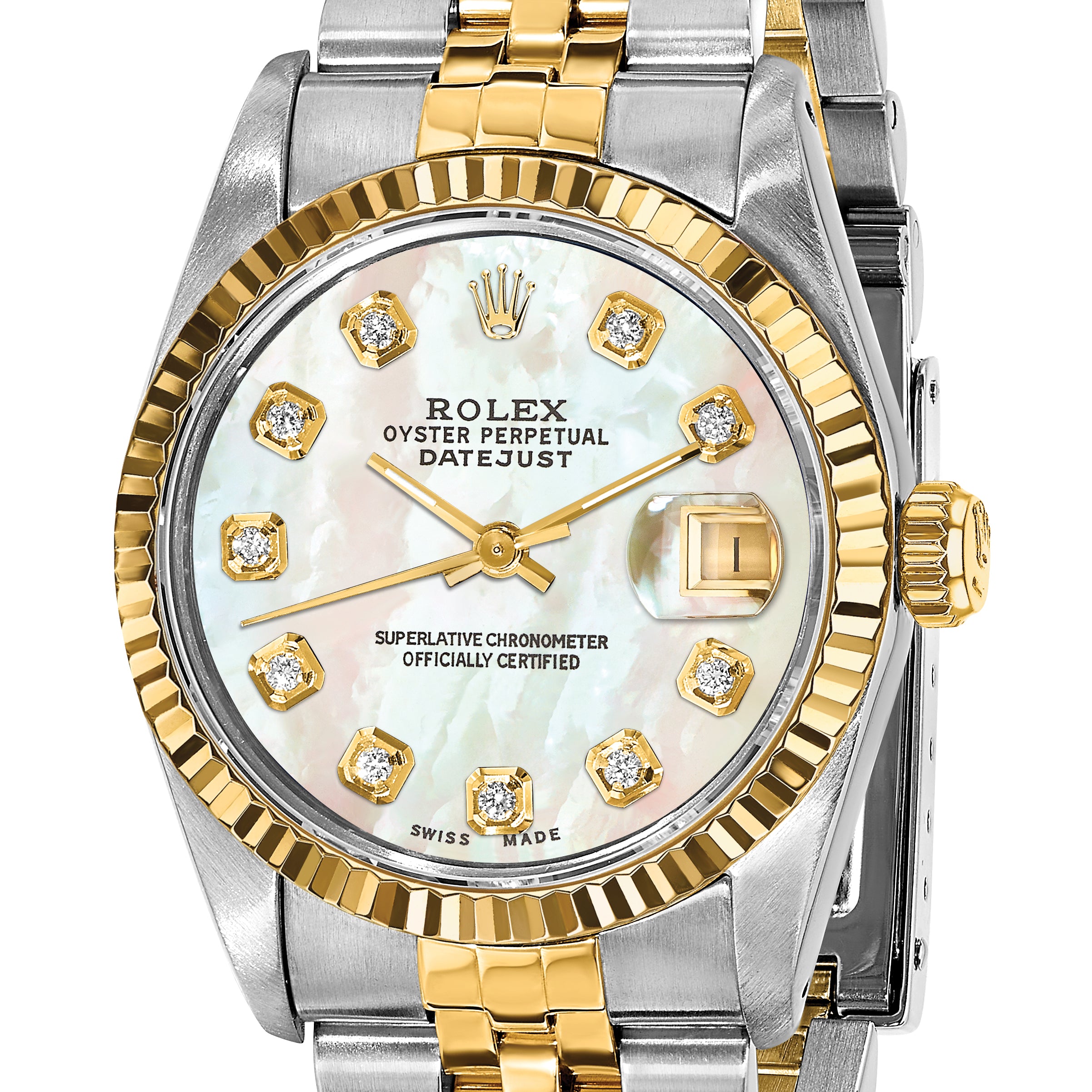 Pre-owned Independently Certified Men's Two-tone Datejust Jubilee with Mother of Pearl Diamond Dial and 18K Fluted Bezel