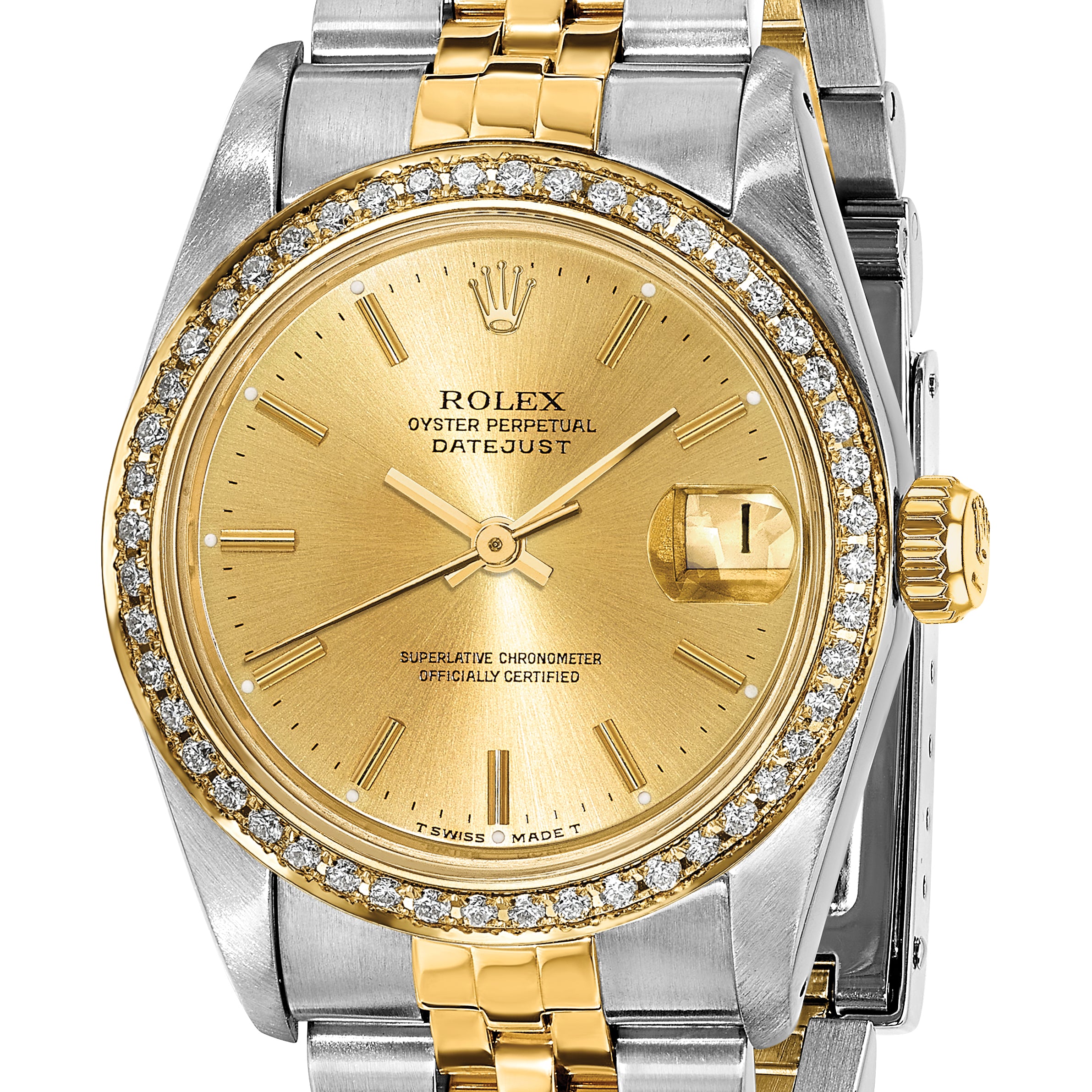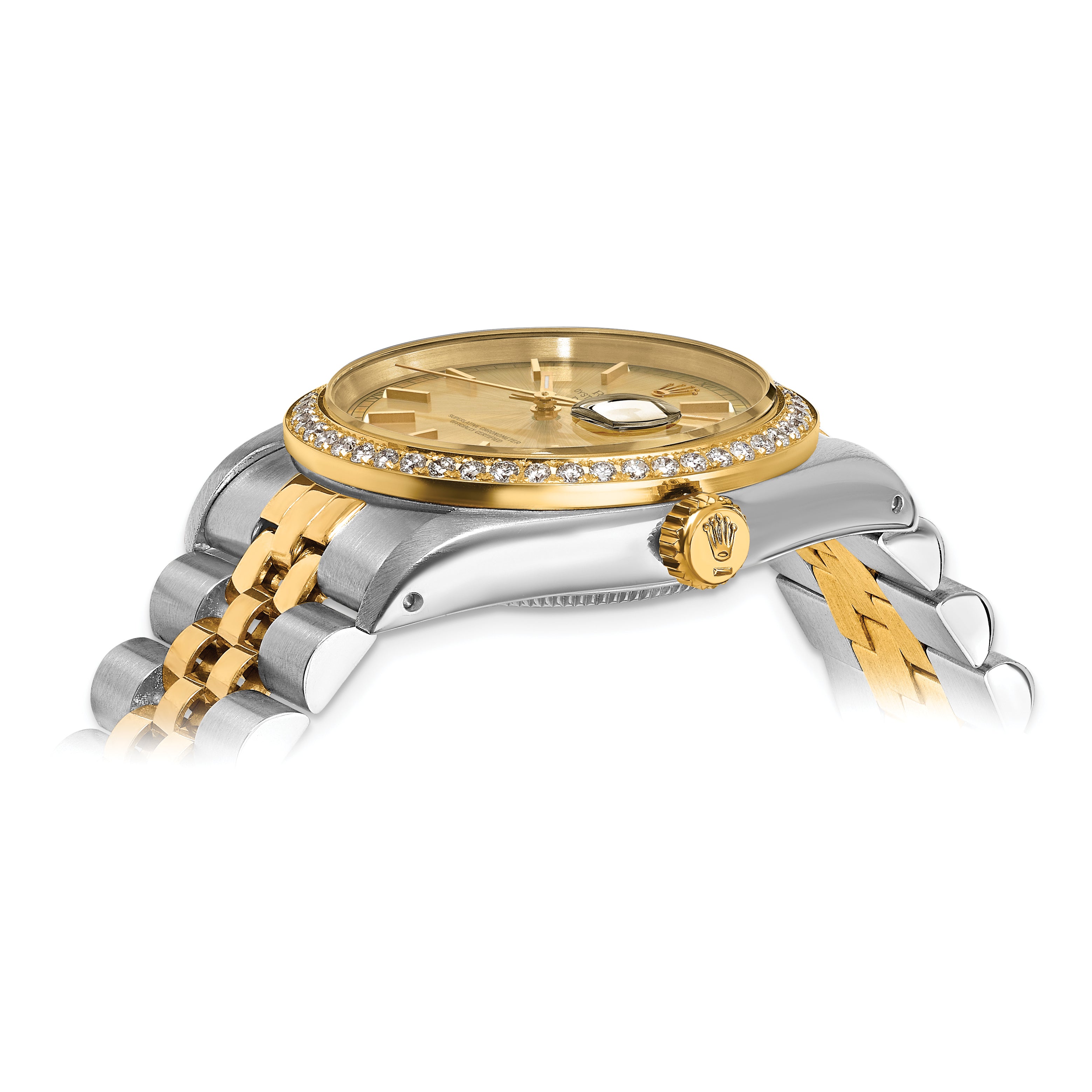 Pre-owned Rolex Independently Certified Men's Two-tone Datejust Jubilee with Champagne Diamond Dial and 18K Fluted Bezel