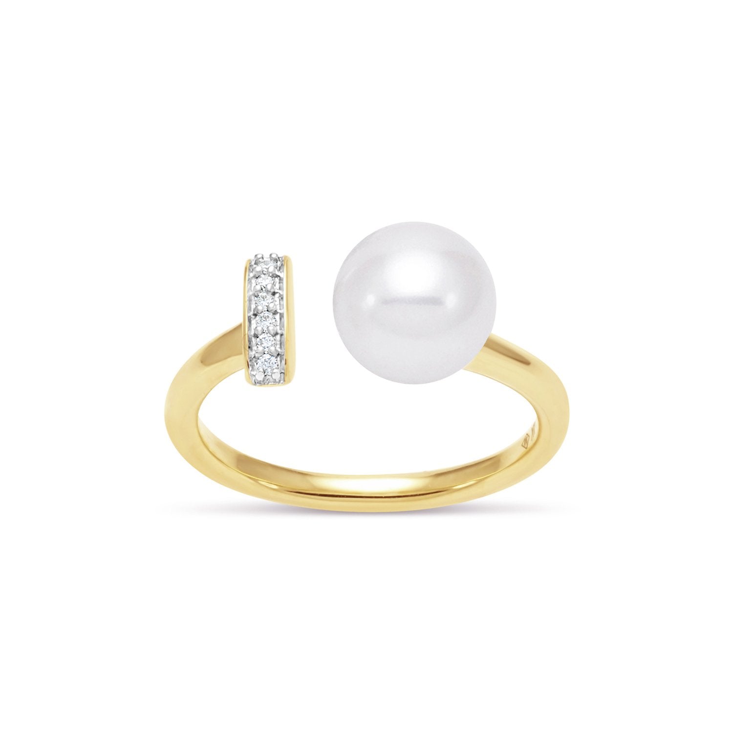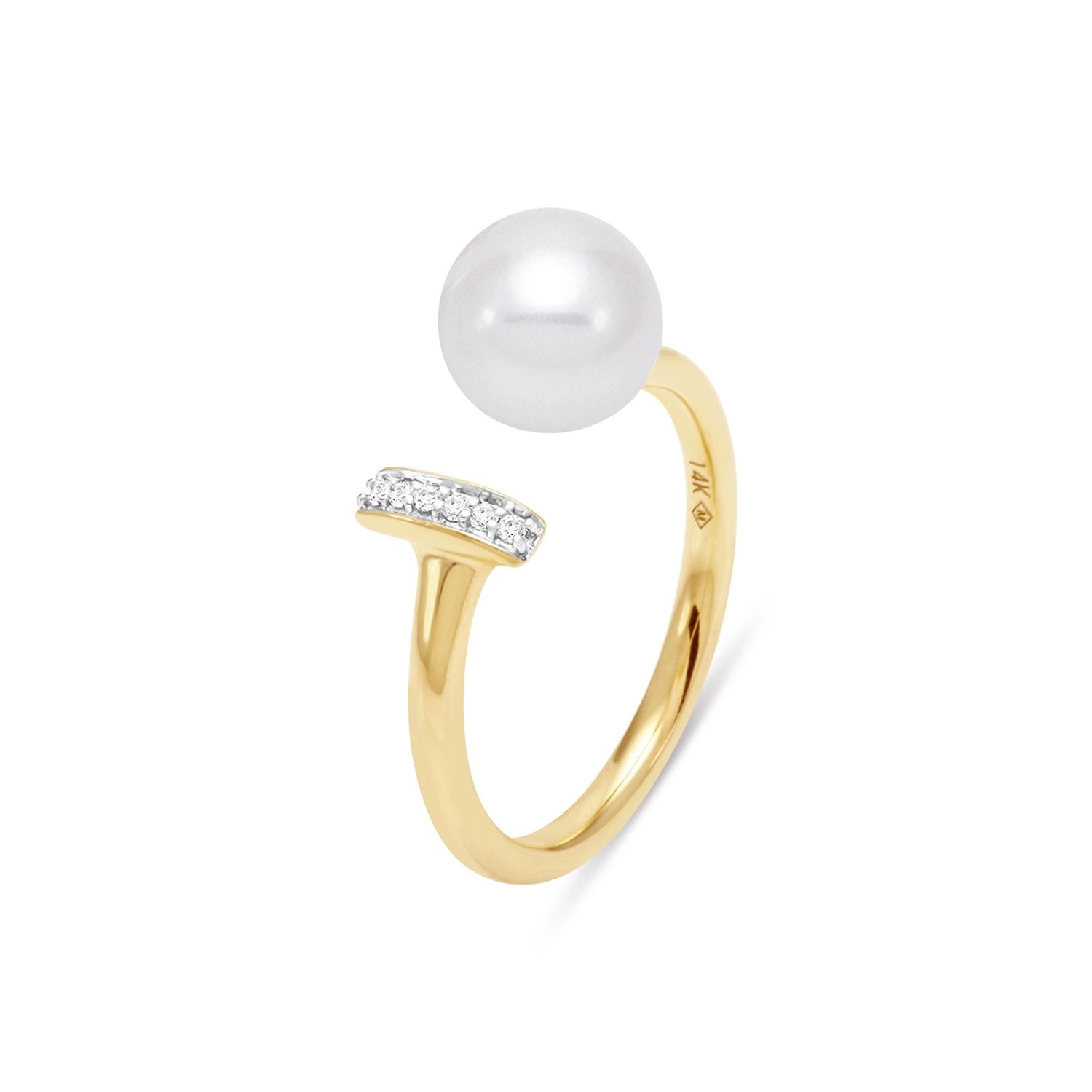 This lovely Linear Pearl Ring is a 14KT Yellow Gold 7.5-8MM White Freshwater Pearl Ring with 6 Diamonds 0.03 TCW and is apart of our Mastoloni Collection. Our Mastoloni collection of jewelry includes bracelets, rings, necklaces, and earrings.