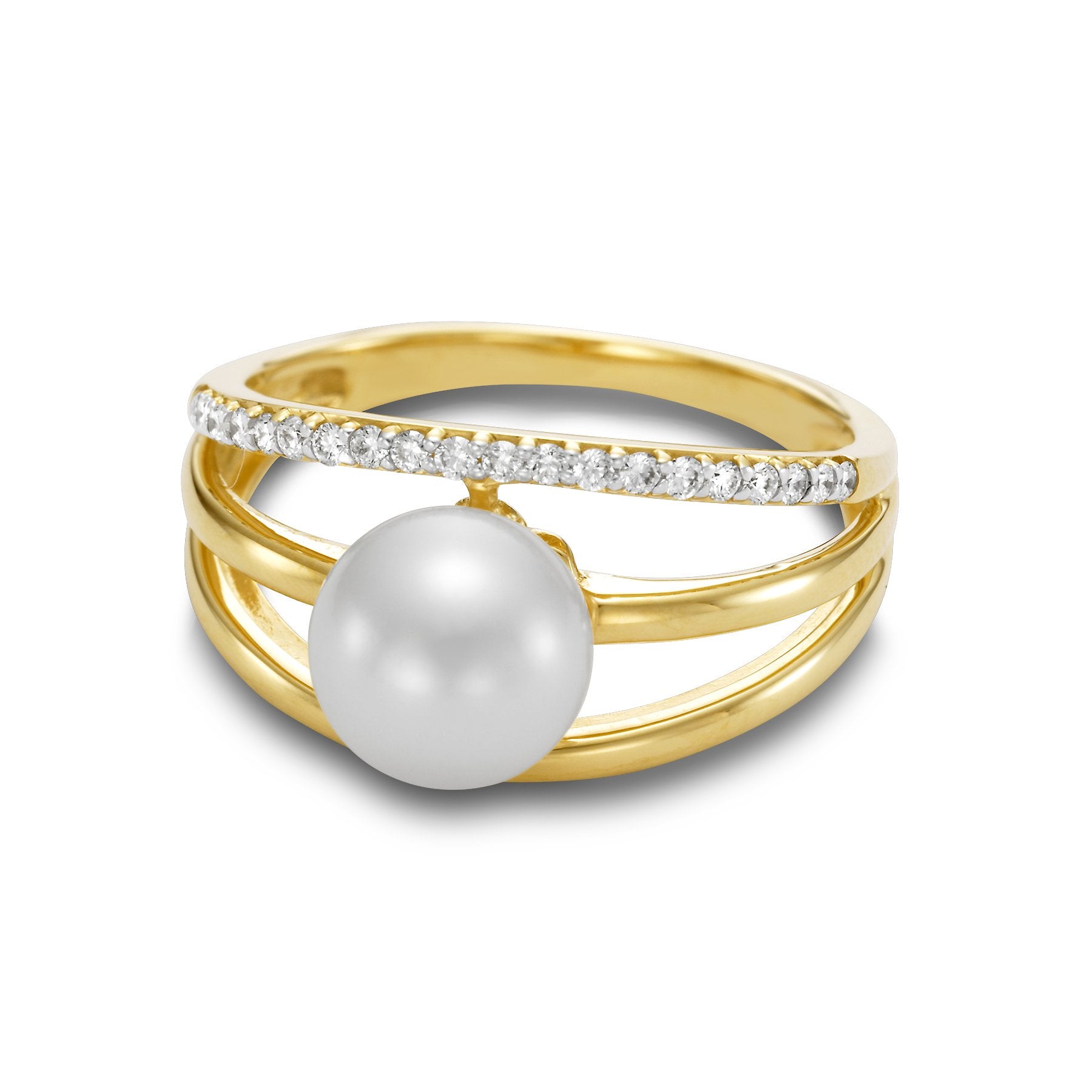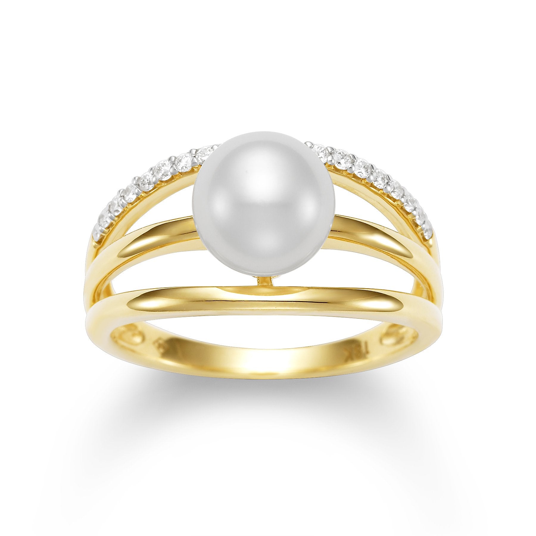 This lovely Stack Ring is a 18KT Yellow Gold 7.5-8MM White Freshwater Pearl Ring with 20 Diamonds 0.16 TCW and is apart of our Mastoloni Collection. Our Mastoloni collection of jewelry includes bracelets, rings, necklaces, and earrings.