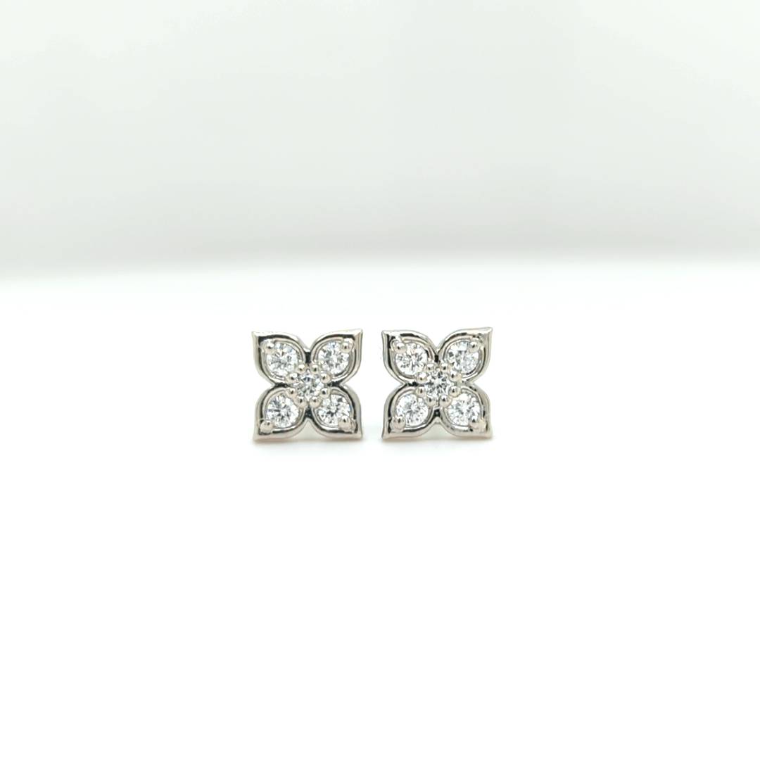 14k White gold Lotus Diamond Studs