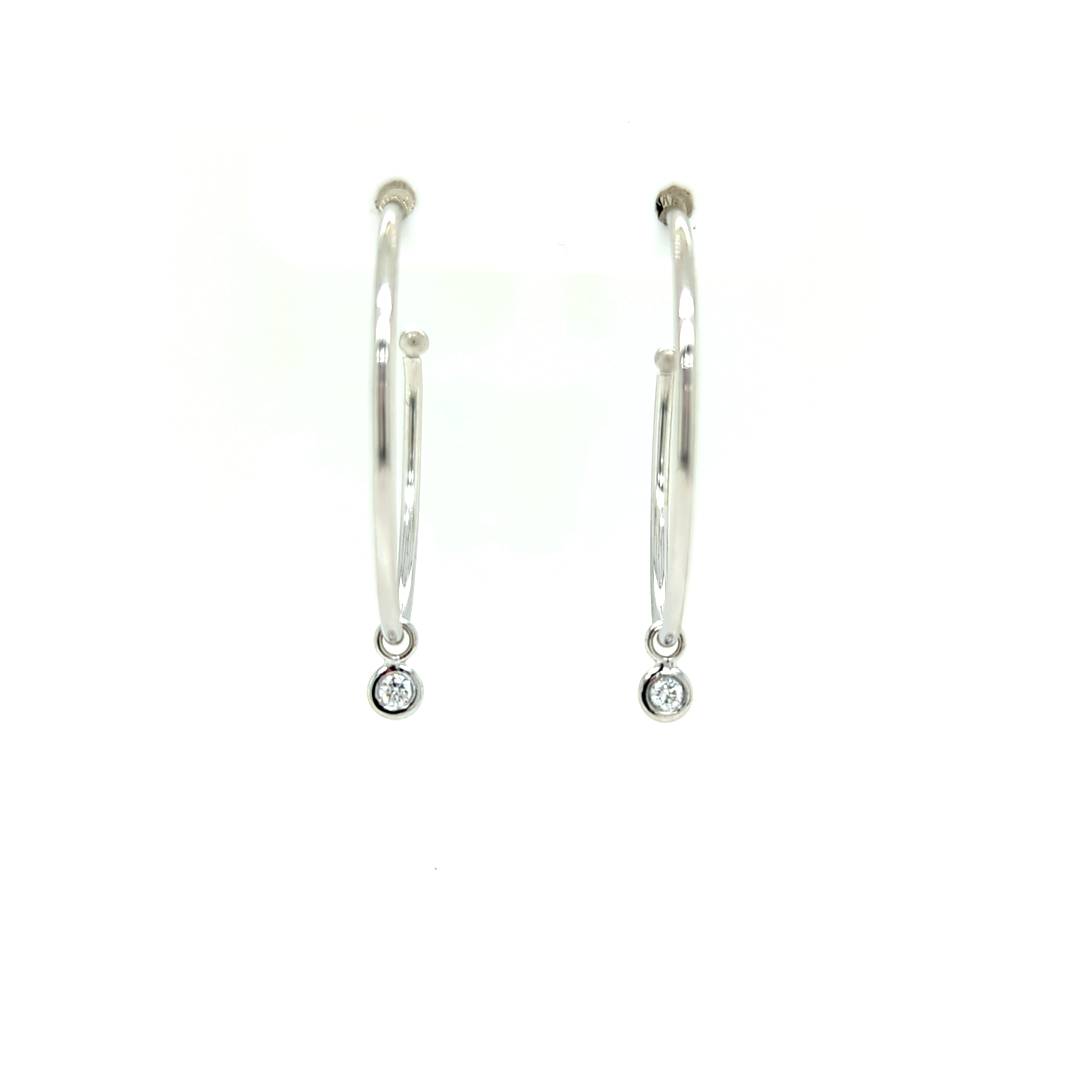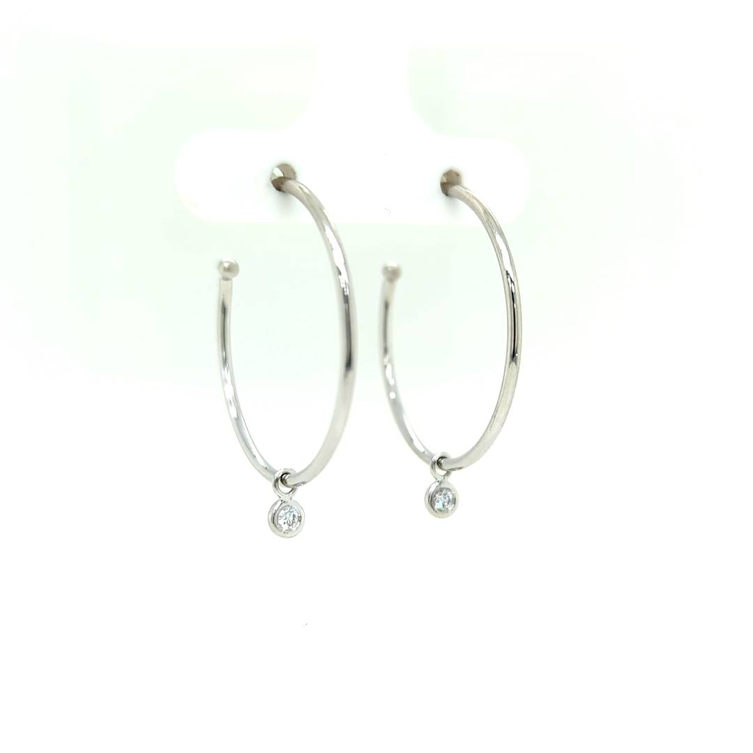 14k White Gold Diamonx Bezel Hoop Post Earrings