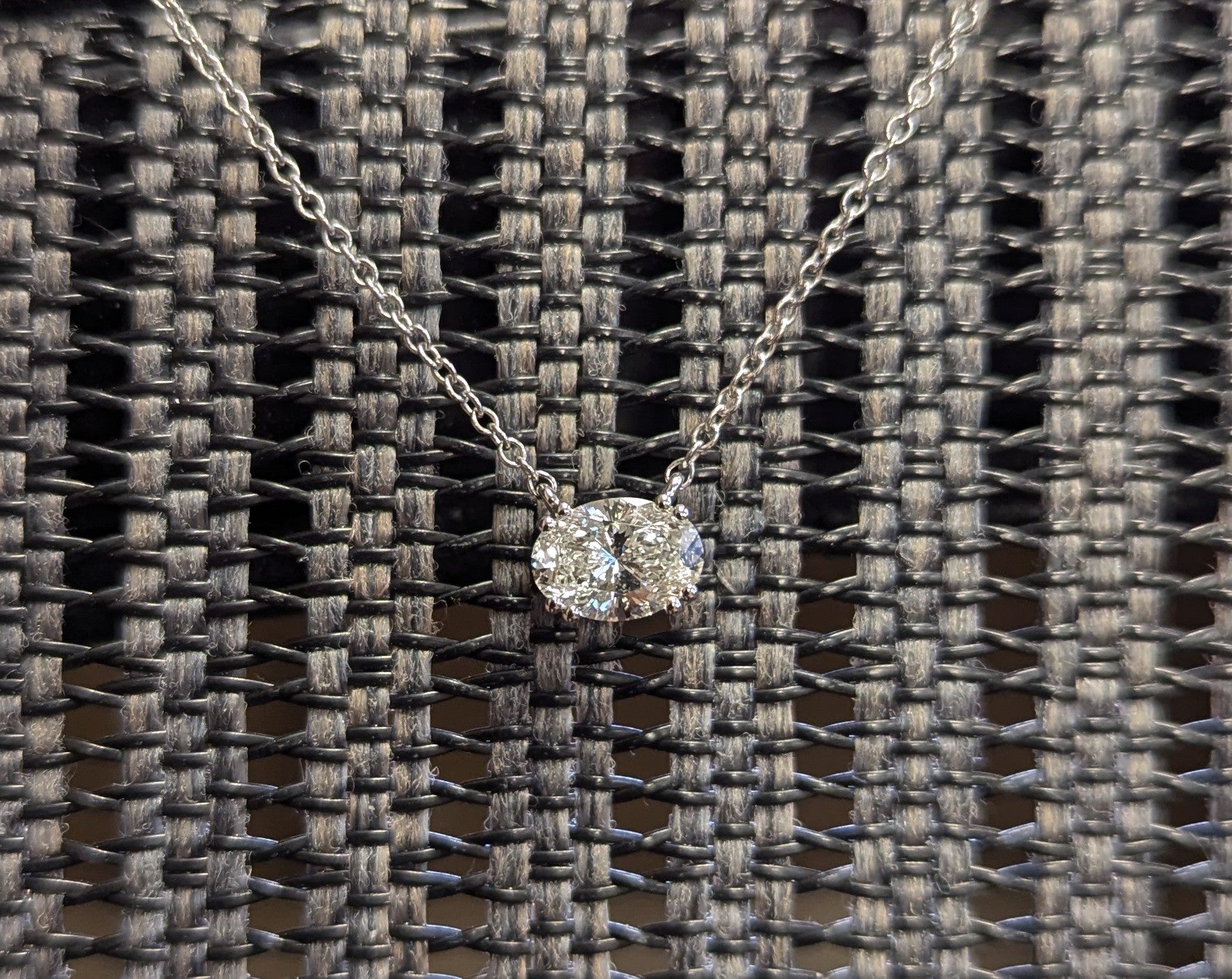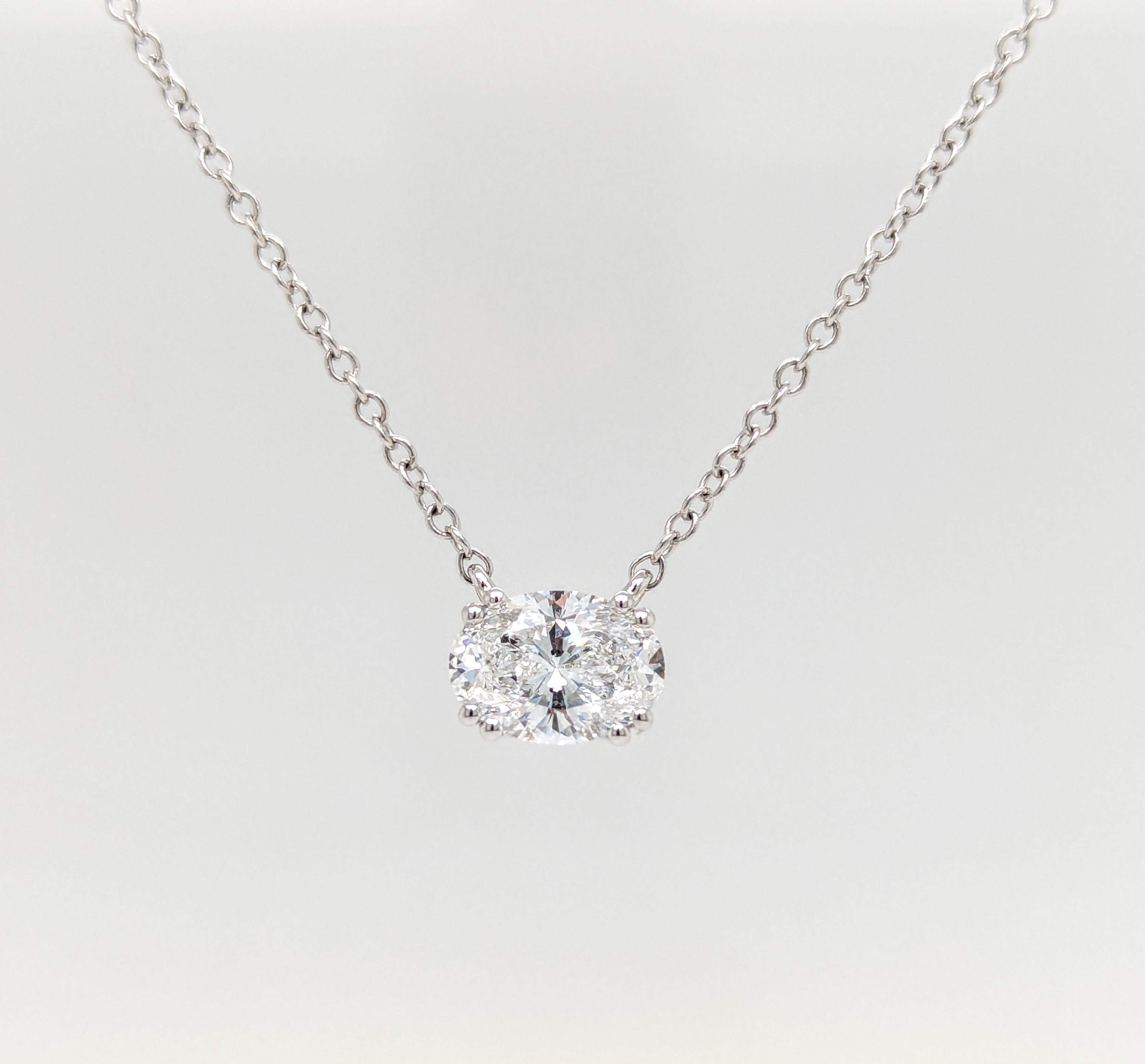 14k White Gold Lab Grown Oval Pendant- 0.79cttw
