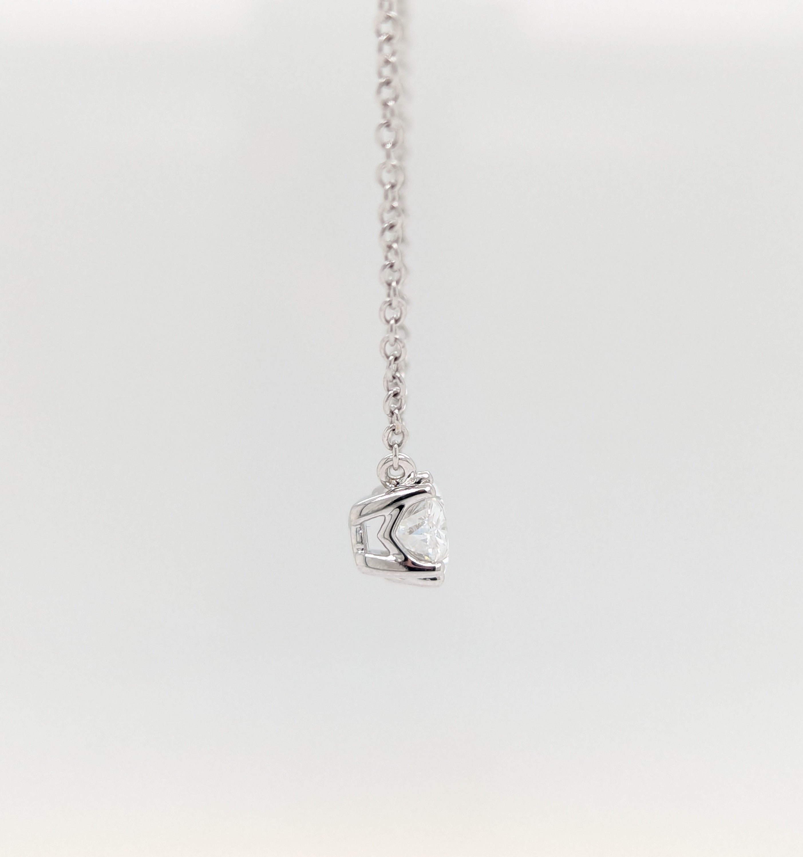 Discover the refined elegance of our lab-grown diamond pendant, set in radiant 14k white gold. This stunning piece features a single 0.79ct oval-cut diamond with an exceptional E VVS2 clarity grade, ensuring a brilliance that captivates. The pendant hangs gracefully from an 18-inch chain, perfectly balancing sophistication and versatility. Weighing 2.0 grams, it offers a luxurious feel while remaining understated. Ideal for adding a touch of sparkle to any outfit, this pendant is a timeless piece that effortlessly enhances your jewelry collection. Certified by IGI (LG625491867), it embodies both quality and elegance.