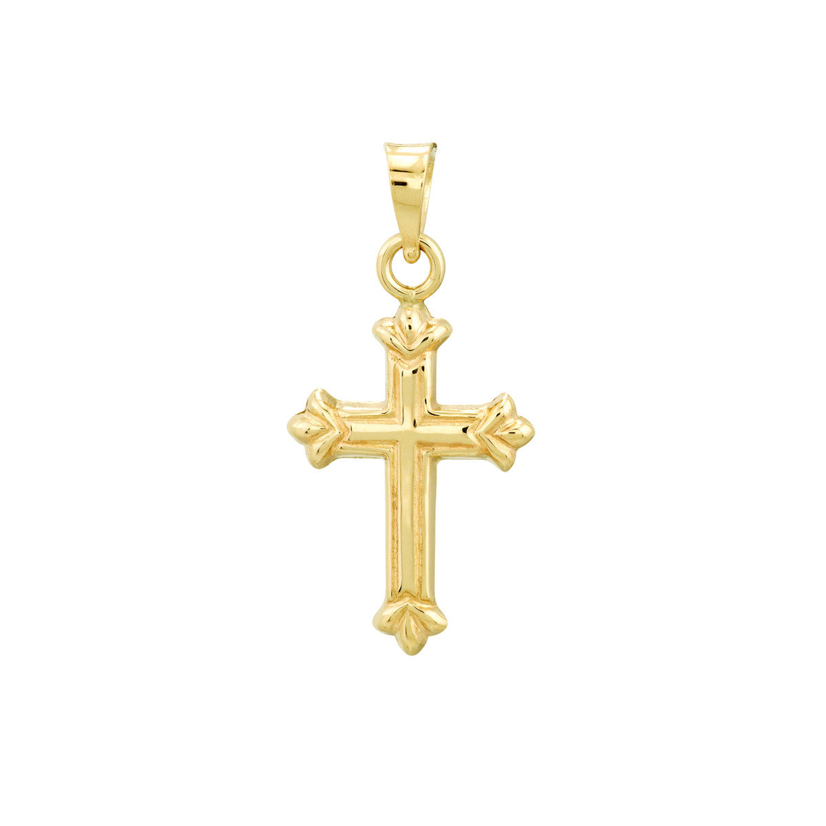 14k Yellow Gold 3D Fleur Detailed Cross Pendant