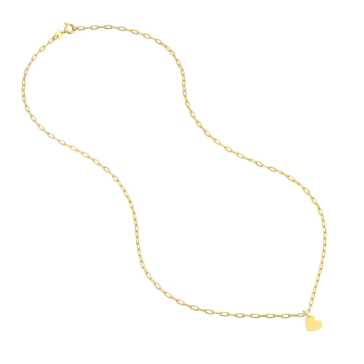 You'll love this dangle heart necklace featuring a 7.4mm heart charm on a 1.7mm paper clip chain. Crafted in 14K gold.