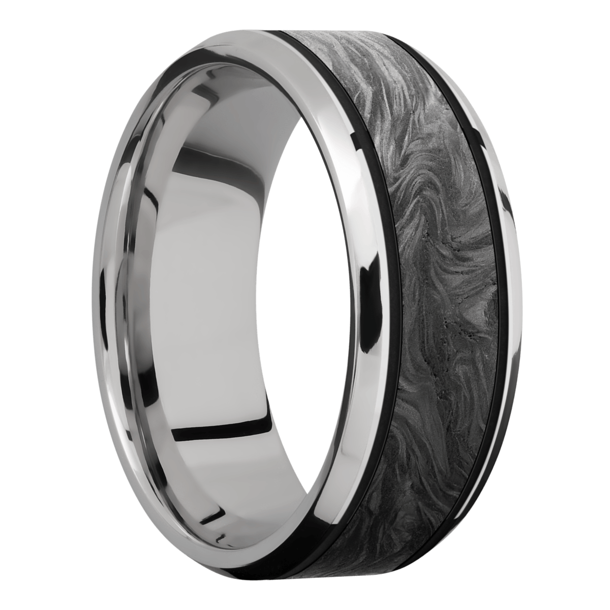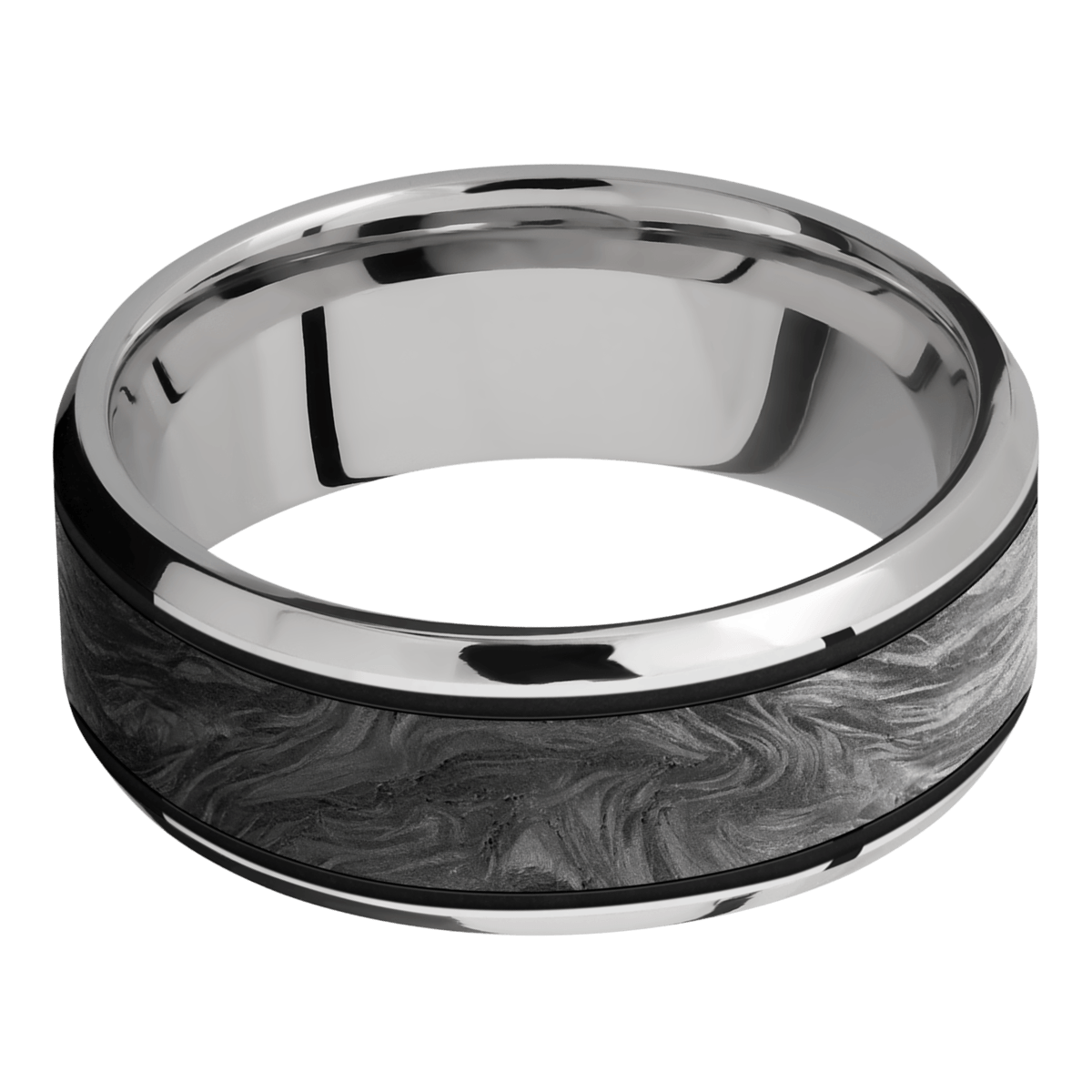 Product Description: 8mm Titanium Band With 5mm Forged Carbon Fiber Accented By Gloss Black Cerakote.