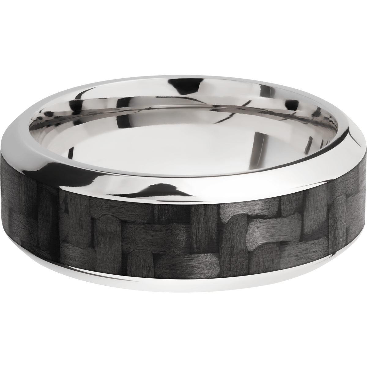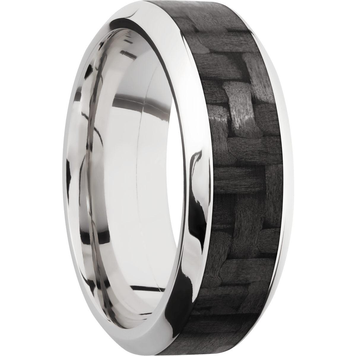 Product Description: 8mm Beveled Cobalt Chrome Band With 5mm Carbon Fiber.