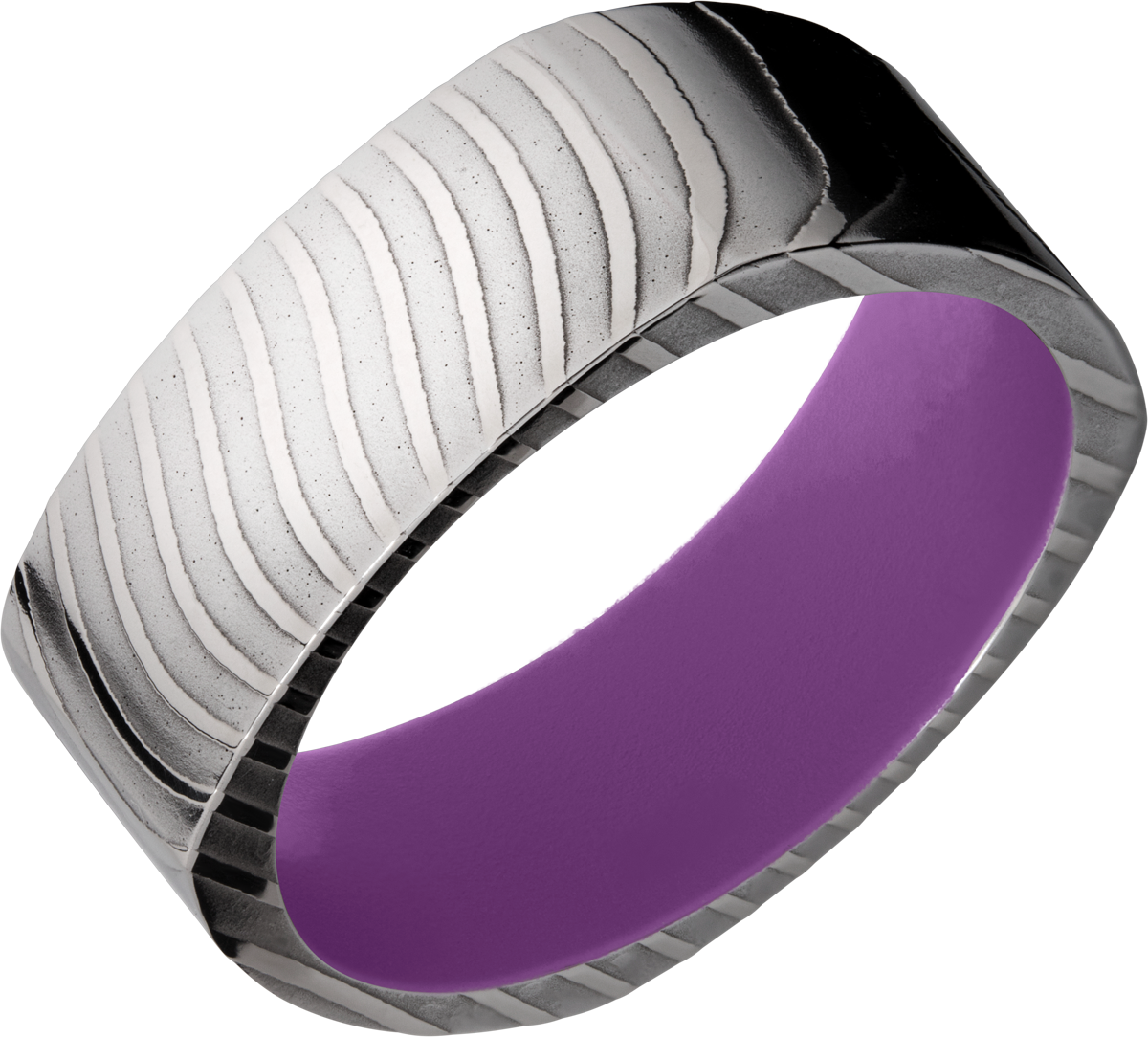 Tiger Damascus steel flat, square 8mm band with a Wild Purple Cerakote sleeve