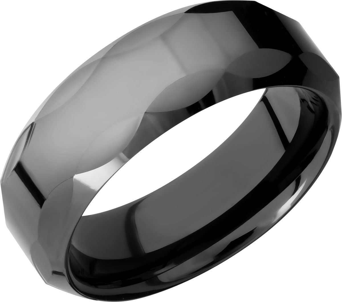 Tungsten Ceramic 8mm flat band with beveled edges and facet pattern
