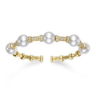 This lovely Pavé Bamboo Cuff Bracelet is a 18KT Yellow Gold 9.5-11MM White South Sea Pearl Bracelet with 140 Diamonds 1.00 TCW and is apart of our Mastoloni Collection. Our Mastoloni collection of jewelry includes bracelets, rings, necklaces, and earrings.