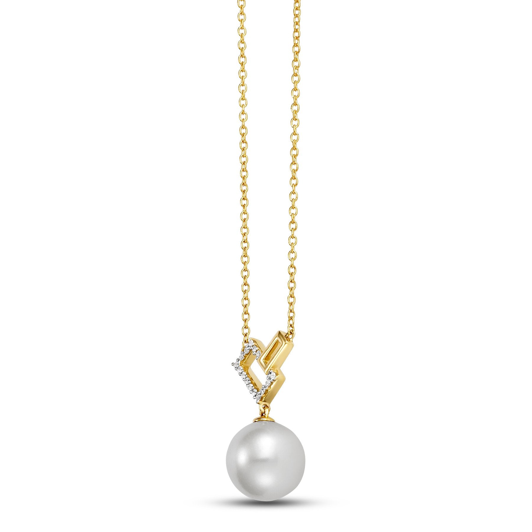 This lovely Geo Diamond Pendant Necklace is a 14KT Yellow Gold 7.5-8MM White Freshwater Pearl Necklace with 15 Diamonds 0.06 TCW, 18 Inches and is apart of our Mastoloni Collection. Our Mastoloni collection of jewelry includes bracelets, rings, necklaces, and earrings.